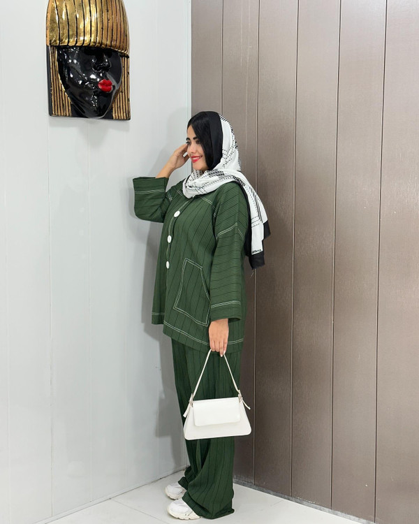 ریز اندازه لباس: دور کمر 120 دورسینه 125 دور باسن 130 ٫ دور کمر شلوار تا 115 ( پشت کش)✅