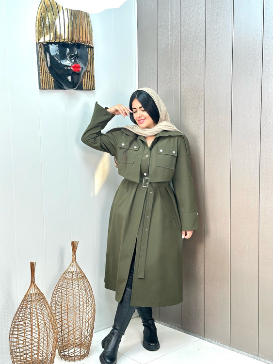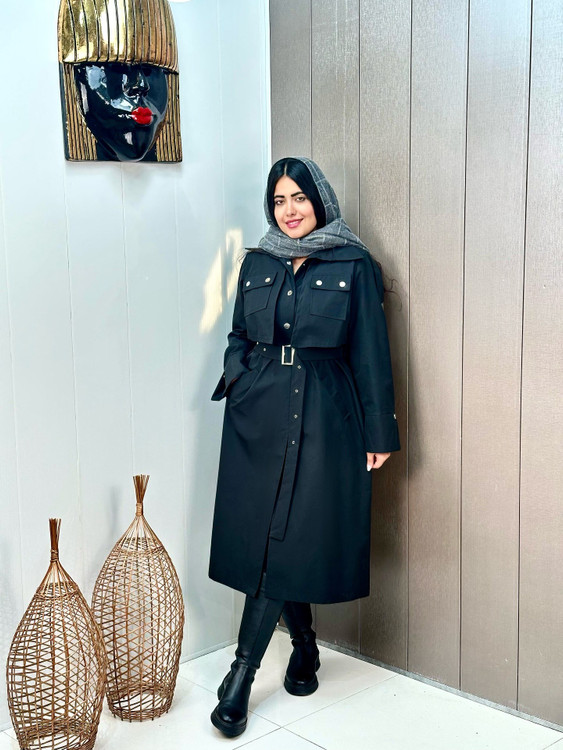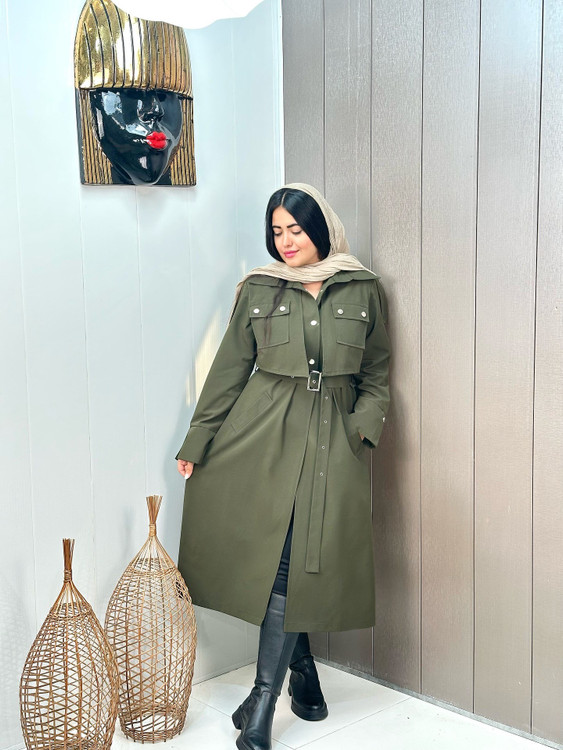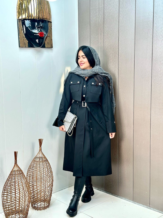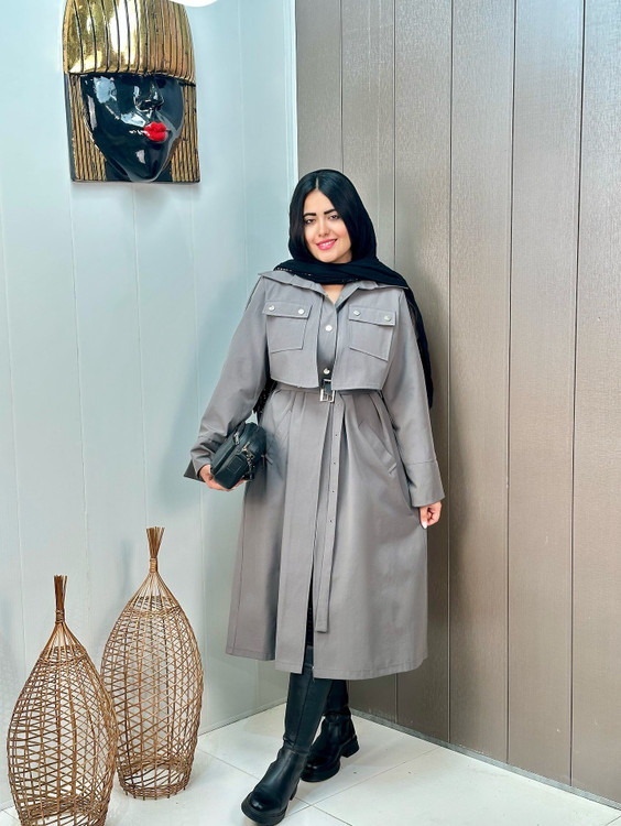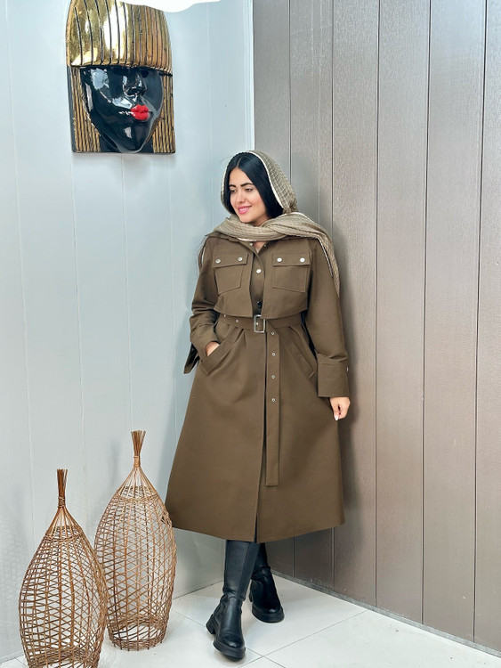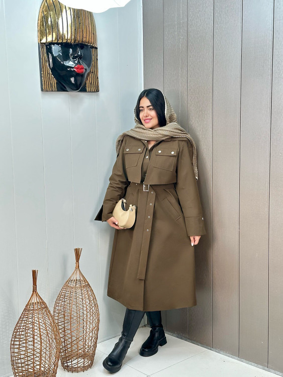 بارونی ترنچ کت کتان زارا ضداب ژیله جیب کد 420