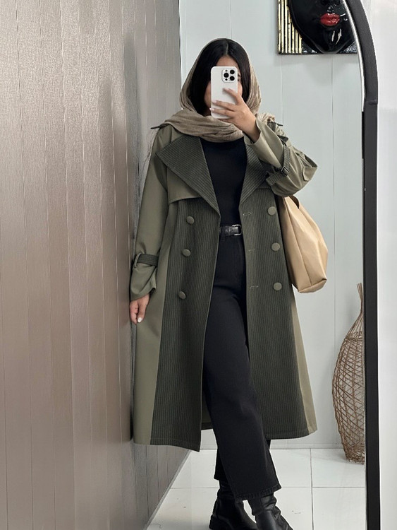 بارونی ترنچ کت کتان زارا ضداب ترکیبی کد 421