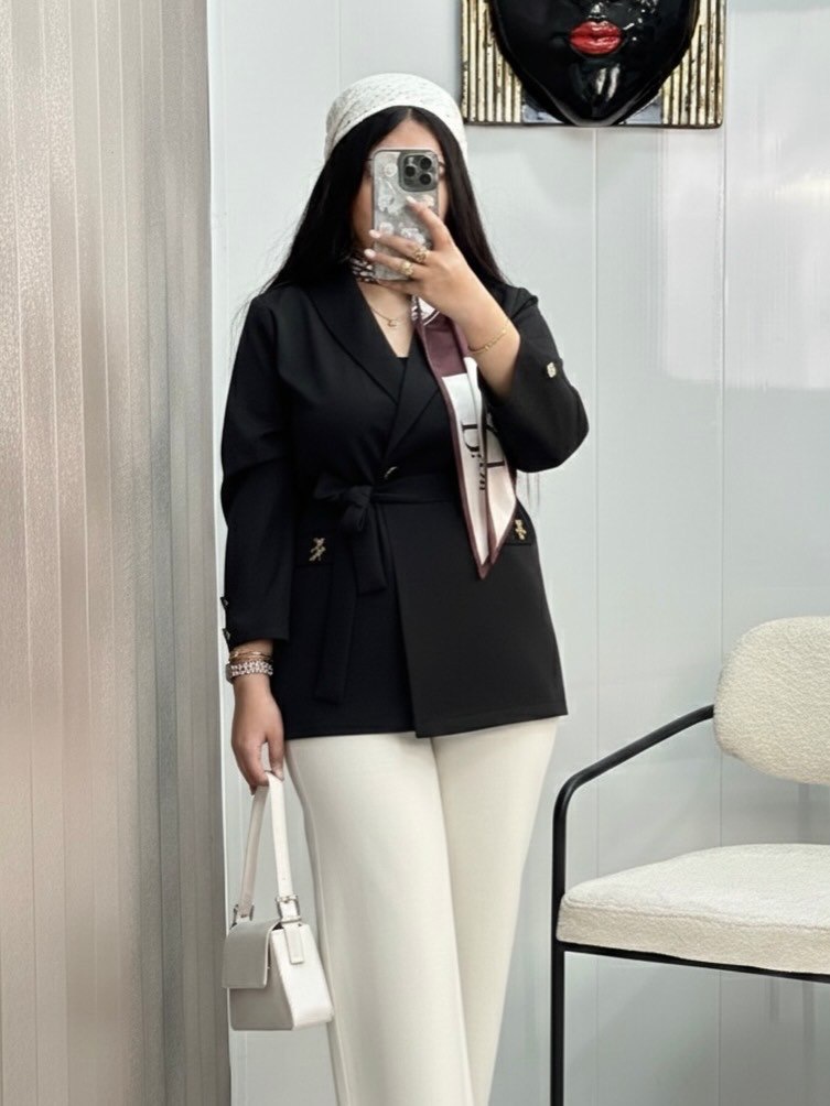 توضیحات: باندانا رو میتونید جدا سفارش بدید😍این کت کمربند هم رنگ و جنس پارچه خودش همراهش داره✅